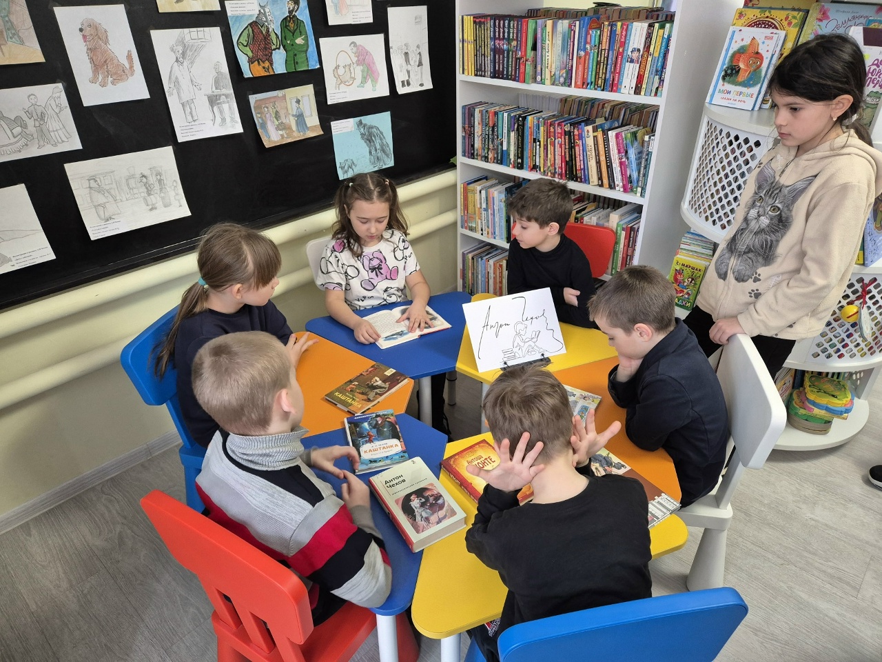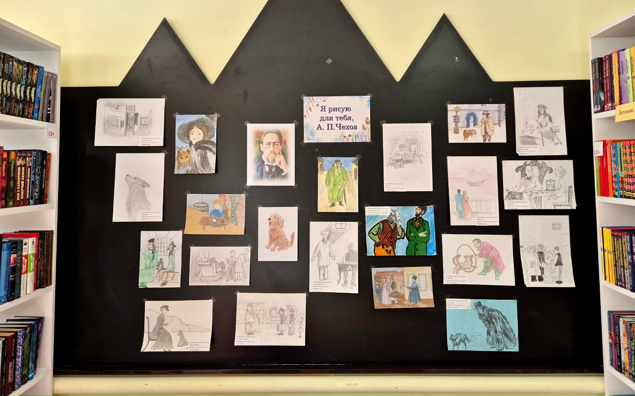 В рамках празднования 166-летия великого русского писателя на детском абонементе организована выставка рисунков «Я рисую для тебя, А. П. Чехов».